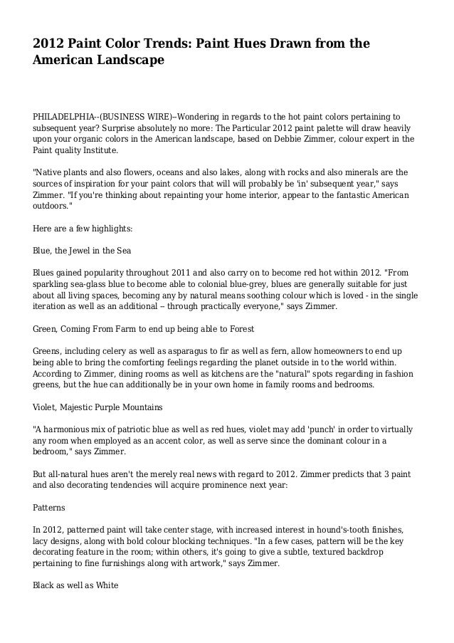 2012 Paint Color Trends Paint Hues Drawn From The American